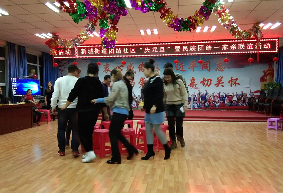 活动内容丰富多彩,活动现场气氛活跃、热烈。在联谊会上,以《欢乐的跳吧》舞蹈表演拉开了活动序幕。社区干部和工作队带着精心准备的《团结就是力量》、民族舞蹈《中华民族一家人》、《美丽的新疆》、居民带来了独唱《我的中国心》、武术和太极拳表演。同时,还进行了党的十九大精神、民族团结等知识抢答,中间大家观看了团结社区与亲戚们一年来深入开展民族团结一家亲活动小视频,还穿插了趣味性游戏抢凳子、老党员带来的红歌联唱等节目个个精彩纷呈,大家以多种形式歌颂社区的新变化和幸福美好生活,让联谊会现场热闹非凡。各族居民不时与演员们互动,开展各种小游戏。台上歌声不断,台下掌声常鸣。歌声、掌声、欢笑声自始至终充斥了整个会场。
