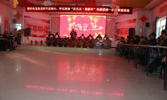 清风网讯(通讯员:沙雅县教育局 畅玉萍)12月30日,红旗镇喀什托格拉克村工作队、村干部、机关干部与村民欢聚一堂,在村委会开展不忘初心牢记使命“庆元旦·迎新年”民族团结一家亲联谊活动。