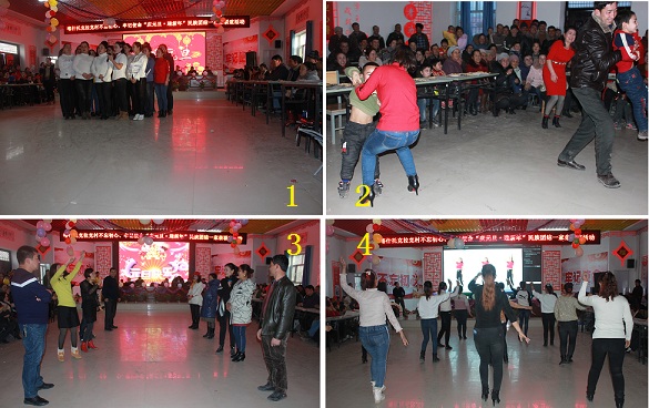 1、村民唱红歌 2、村民亲子游戏活动 3、局机关干部与亲戚同做游戏 4、跳舞队献上的现代舞