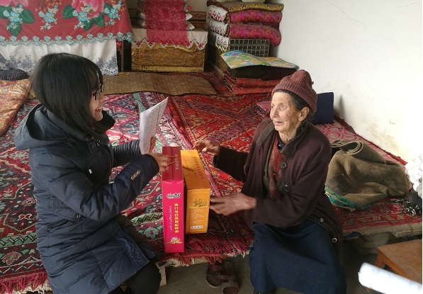 困难群众麦麦提·萨比尔激动的说:“现在国家政策真好,感谢党和政府的关怀,感谢你们在这么冷的天为我送来温暖”。