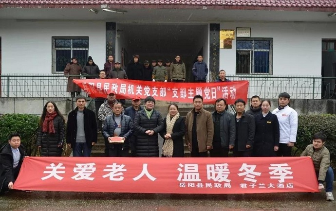 清风网岳阳讯 ( 陈再兴 许萍) 近来,新一轮超强冷空气来袭,持续低温雨雪冰冻,气温骤降。为了敬老院里的老人们能温暖过冬,12月28日,岳阳县民政局局党组书记、局长李君梅率全体党组成员、所属支部党员干部、七色之光党员志愿者,君子兰大酒店总经理付君兰和君子兰志愿者一起赶赴荣家湾镇中心敬老院、鹿角敬老院和友爱敬老院,开展“关爱老人、温暖冬季”为主题的关爱敬老院老人党员志愿服务活动,看望慰问敬老院老人,为他们送去棉絮、棉衣、扣肉、饺子、牛奶、保暖棉袜等物资和慰问金。