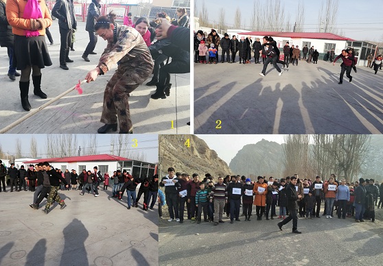文艺活动表演前,室外活动接踵而至,先是长跑让活动拉开了序幕,接着是三人绑腿跑、背媳妇、拔河等比赛让在场的每个人都暖意融融。