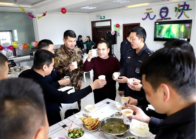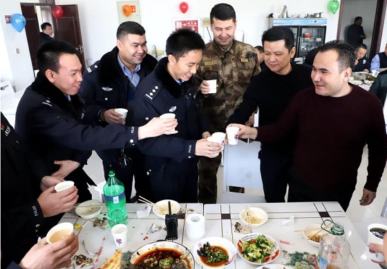 在欢乐的麦西来甫舞蹈中,短暂的聚餐联谊活动走向尾声。参加民警又一如往常走向工作岗位,以饱满的精神面貌,在社会稳定和长治久安的征途中,继续奋力拼搏。
