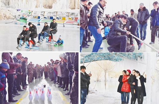 当天,在红林子农庄30亩地的人工湖上举办了冰上拔河、冰上骑自行车、冰壶保龄球等项目的比赛,来自县4个乡(镇)、管委会近40名群众代表参与了比赛。现场游客们呐喊声、助威声此起彼伏,经过一番激烈的比拼,阿克切克力片区、阿瓦提镇代表队分别获得了冠亚军。