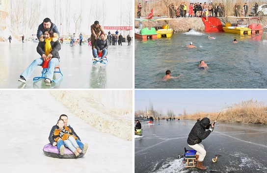 冬季的红林子农庄依旧人山人海,人工冰上滑梯、岸边冰塑在冬日里显得格外引人注目,三五成群的游客在冰塑前合影留念,享受着大自然的馈赠。“投掷鱼线、起钓”随着冰上拔河项目接近尾声,在老大河渡口处一排排冬季垂钓爱好者耐心静坐着等着鱼儿上钩。阿克苏市的垂爱好者郭奇志告诉记者:“红林子农庄是我们冬季垂钓的首选之地,很多垂钓爱好者每年都会来这里垂钓。冬季比夏季垂钓稍微逊色一些,但是从垂钓的意境上完全是两回事。今天我们一起来了10多名垂钓爱好者,每个人都是收获满满,红林子农庄还为我们颁发了奖状奖金。”当日的冰雪旅游节还吸引了阿克苏地区游泳协会的会员,10余名冬泳爱好者,冒着严寒,挑战冬游项目。
