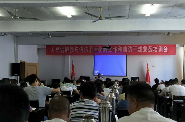 图:业务精通的吴强忠为全县130余名信访、调解干部授课