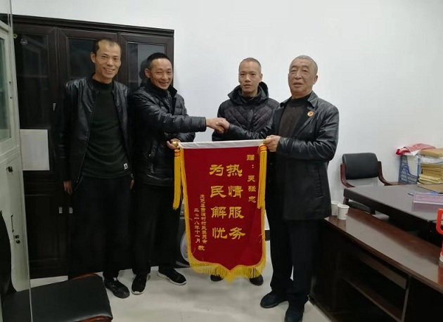 图:一面锦旗系民情(右一吴强忠)