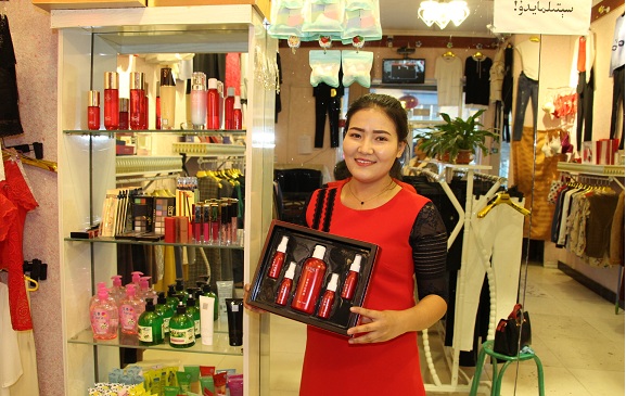 温宿县市场监督管理局驻村工作队了解到她的情况后,安排她到县城服装店进行为期两个月的导购学习,使其掌握了进货、销售的要领,去年下半年帮助她在镇巴扎找了一个门面房开起了服装店,主要经营服装和小饰品。