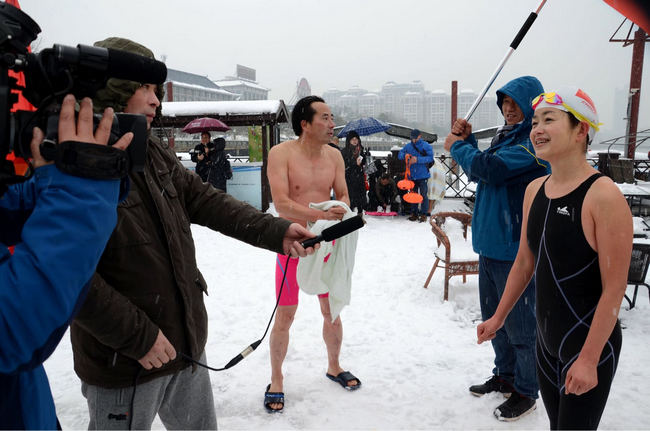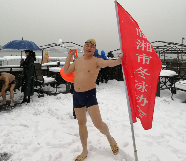 临湘市冬泳协会会长龚伟雄兴奋地说,天空做美,冒雪冬泳更刺激。与岳阳同伴冬泳更快乐。