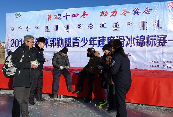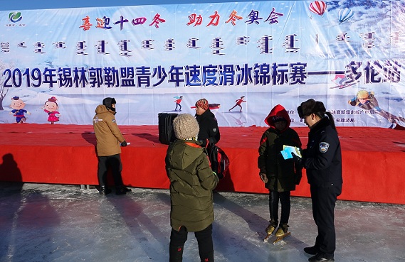 锡林浩特公安处多伦车站派出所深入“锡林郭勒盟青少年速度滑冰锦标赛”现场进行爱路护路宣传