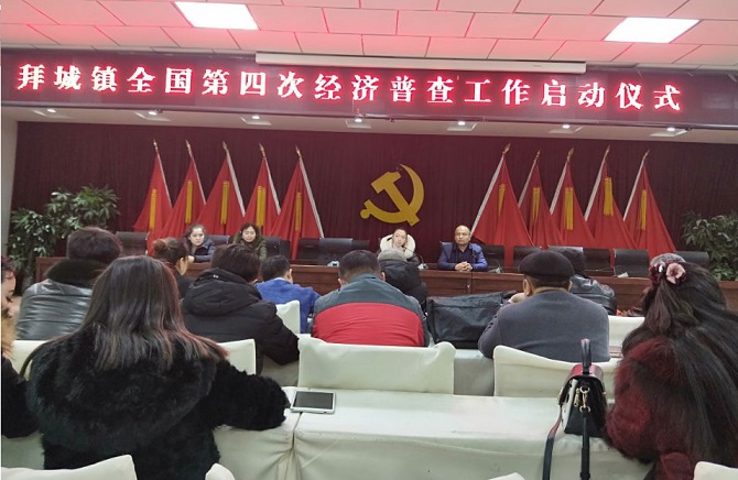 1月4日下午4点,在拜城镇展开了第四次全国经济普查工作启动仪式。会议指出,第四次全国经济普查的对象是我国境内的全部法人单位、产业活动单位和个体经营户。会上,拜城镇吐逊委员安排了2019年开展经济普查的具体事项,要求社区普查人员,牢固树立大局意识、决战意识、攻坚意识,高质量完成单位清查工作任务。