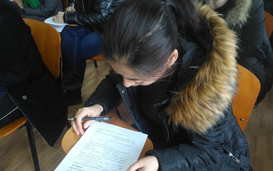 此次考试分为笔试和口语测试两部分。考试现场由“访惠聚”队员、社区干部监考。时间为120分钟。