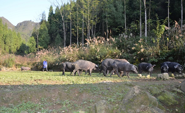 清风网讯:(成亮江)近年来,铜仁松桃县寨英镇结合当地得天独厚的自然优势,通过大力发展原生态自繁自养、现代化管理、传统饲养的模式,发展生态黑猪养殖业,目前,该基地的生态黑猪养殖品牌效应已经初步凸显,带动了当地贫困户实现就业门路,探索出了一条脱贫致富新路子。