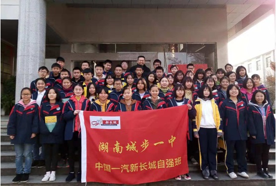 城步一中中国一汽新长城自强班项目是中国扶贫基金会、中国一汽集团捐资开办。项目共捐资助学城步一中2018级高一新生50名。每名学生每学期资助金额1000元,高中三年共资助6000元,项目捐资助学总额30万元。