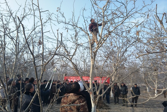 1月14号,沙雅县广播电视台驻海楼镇诺尔如孜库木村“访惠聚”工作队组织村里的党员、致富能手为村民开展“科技之冬”林果业培训,为核桃增收打下基础。