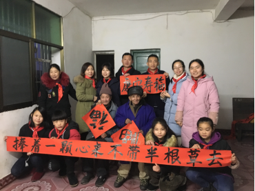孝,是中华传统文化中的一个重要部分,“老吾老以及人之老”,关心关爱老人也是我们生活中不可或缺的一个重要内容。在敬老院里,长沙市青年书法家李加林老师铺开红纸,为老人们书写对联、“福”字,给老人们的房间增添一些节日的喜庆,也为老人送上新春的美好祝福。支教老师们围着圆桌,热闹地包着饺子,敬老院里的两位爷爷也偶尔来看看他们的热闹。煮上一锅热腾腾的饺子,大家一边吃一边与老人们闲聊,就像一个温馨的大家庭。