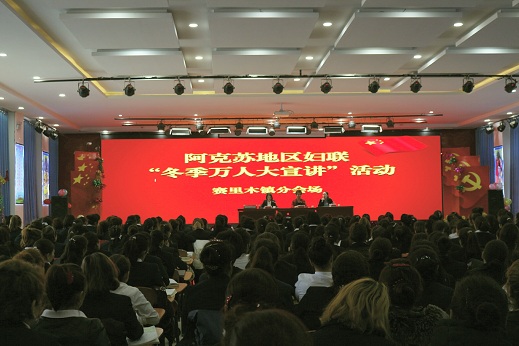 清风网讯(拜城县妇联 供稿)为深入学习贯彻落实习近平新时代中国特色社会主义思想、十九大精神和全国妇女十二大精神,紧紧围绕社会稳定和长治久安总目标,团结带领广大各族妇女群众,感党恩、听党话、跟党走,1月14日至15日,由阿克苏地区妇联党组副书记、主席哈丽旦·如孜带队的宣讲组分三个组赴我县拜城镇、布隆乡、康其乡、亚吐尔乡、赛里木镇、黑英山乡等6个乡镇开展“冬季万人大宣讲”活动6场次,各乡村(社区)妇联主席、副主席、执委会委员和妇女群众代表2500余人聆听宣讲。