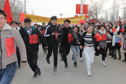 哨声一响,30余名参赛选手如离弦之箭奋勇向前,大家不惧寒冷,不畏路遥,相互支持,坚持到底。零下15℃低温敌不过同学们如火的热情,陪跑、牵跑、加油助威,体现了克孜尔乡青年大学生的集体责任感和凝聚力。乡党委书记孙付斌向返乡大学生寄语“青年强则国家强,年轻人要有理想,敢追求,勇担当,勤锻炼,身体是革命的本钱,有了好身体我们才能更好的为祖国,为社会、为家庭做更多有益的事”。