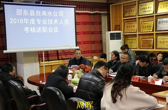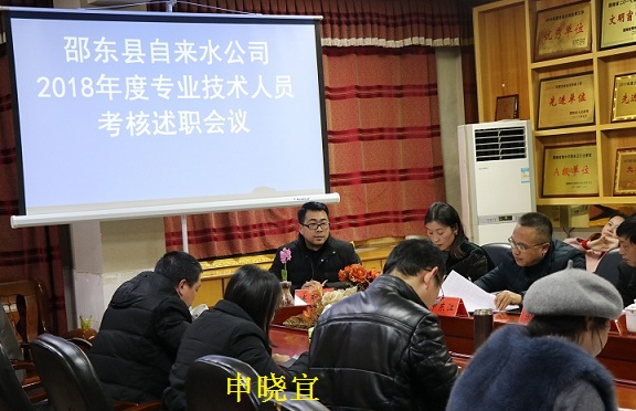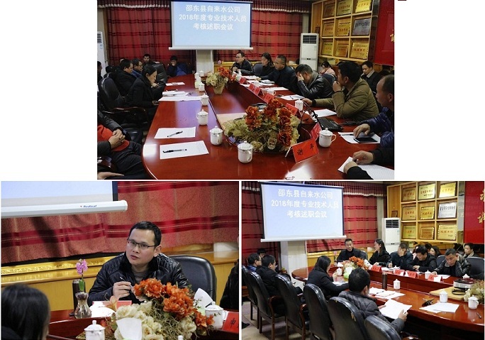 为进一步加强专业技术人员的管理,客观评价专业技术人员年度工作业绩,督促专业技术人员积极履行岗位职责,激励专业技术人员在供水业务服务工作中更好的发挥作用,建立健全优胜劣汰、能上能下、动态管理的聘用机制,根据专业技术人员量化考核管理办法,1月14日,县自来水公司举行了2018年度专业技术人员考核述职报告会。公司经理兼党支部书记罗小刚及全体专业技术人员参加了考核述职会议,会议由副经理兼党支部副书记郭松子主持,考核小组评委由6名中层管理人员担任。