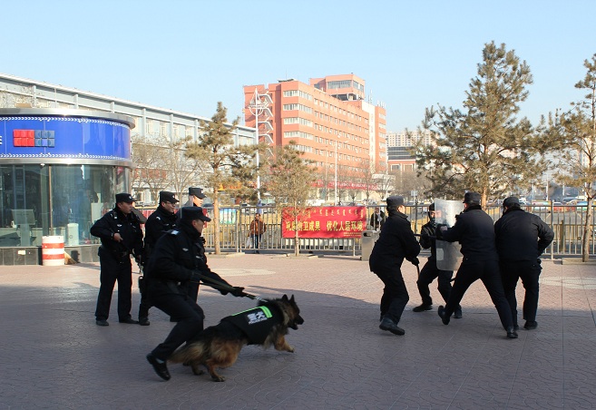 这是春运前夕,包头东站派出所联合包头公安处特警支队、驻站武警及车站客运值班人员开展的一次刀斧砍杀反恐演练,旨在通过反恐应急处突演练,强化系统各单元、各警种协同作战、快速反应、现场判定及“扁平化”指挥效能,进一步提高了站区各单元在反恐维稳、应急处突等方面联勤联动的默契配合程度,牢固树立反恐一盘棋的整体工作思路,为马上来临的春运保驾护航。