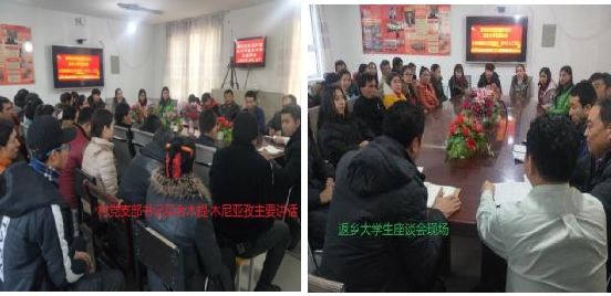 座谈会上,返乡大学生饶有兴趣地讲述了在校期间的学习和生活情况。村党支部副书记加马力·加拉尼和工作队副队长艾合买提·玉素甫就返乡大学生寒假社会实践活动进行了安排。根据活动计划,村委会和工作队将在寒假组织返乡学生开展发声亮剑、文艺演出、政策法规宣讲和各类志愿者服务活动。