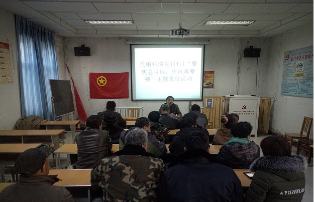 清风网讯(沙雅县税务局:阿依吐然木·尼亚孜)1月18日下午,兰帕科瑞克村党支部组织本村全体党员及入党积极分子部开展“聚焦总目标 作风再整顿”主题党日活动,此活动,村两委班子成员、全体党员及入党积极分子等19余人参加了主题党日活动。