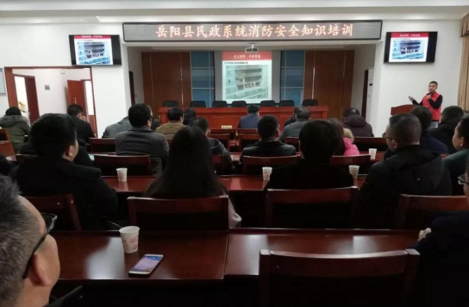 清风网岳阳讯( 陈再兴 袁福军 许萍)1月17日,岳阳县民政系统开展消防安全知识培训,全体干部职工、各乡镇敬老院院长和社会养老机构负责人参加。