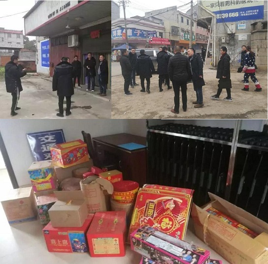 1月17日上午,麻塘办事处党工委副书记胡华盛和副主任蒋仕涛带队组织安监站、控建办、派出所、市场食品药品监督管理所,抽调精干力量20余人组成烟花爆竹"打非治违”行动联合检查组,全面检查无证经营烟花爆竹的门店。行动共搜查20多家商店,查处6家违法销售烟花爆竹商户,收缴烟花礼盒8个,大小鞭炮90多挂。将违法销售的烟花爆竹全部收缴并统一交县安监局集中销毁。