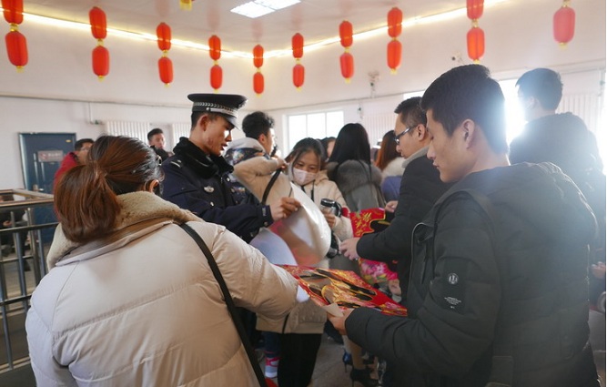 清风网讯(通讯员:邓晓敏) 1月20日,化德所团支部组织开展“平安伴您行、送福到万家”活动。活动期间,化德所团支部为出行旅客赠送春联和福字,提前送上新春祝福;同时民警通过广播、发放宣传品、现场讲解等形式为旅客讲解了不法分子常见的窃取财物、诈骗钱财的方法,并倡导在春运期间安全乘车、文明出行。