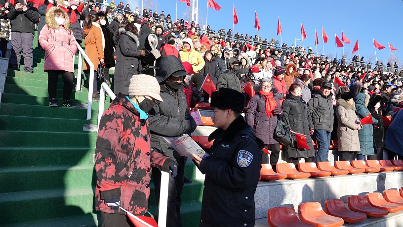 期间,民警首先通过悬挂横幅、发放宣传手册的形式,向参赛选手、各地游客、媒体记者以及现场观众讲解铁路知识;随后向大家介绍了多丰铁路目前情况,旨在进一步提升人民群众爱路护路的安全意识,了解锡林铁路警方在春运期间的有力举措,展现锡林铁警的良好形象,共同维护铁路安全畅通,确保春运期间安全稳定。