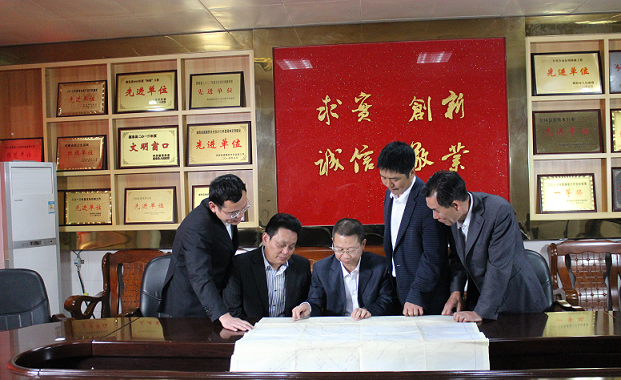 罗小刚工作照3(左1)与班子一起制定供水规划图