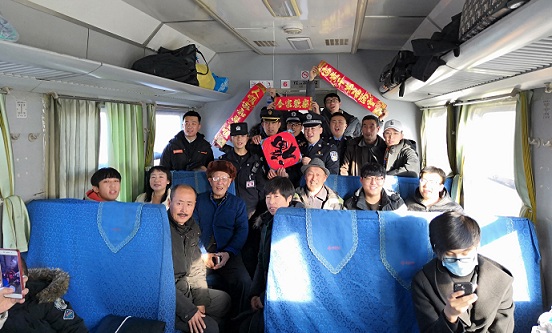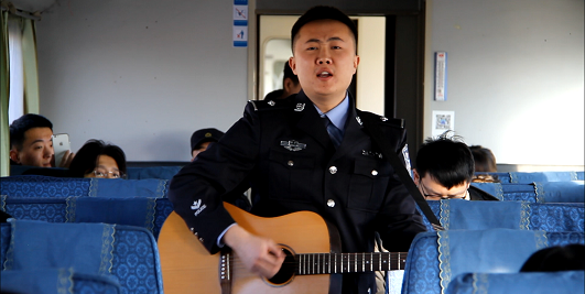 话音刚落,美妙的歌声就在车厢里蔓延开来,旅客们听得陶醉,纷纷掏出手机,想要定格住这美好的瞬间,一曲完毕,旅客们纷纷要求再来一首,范乐抵挡不住大家的热情,就一口气谈了好几首,当然为了应景春运首日,民警范乐还和同事们一起对旅客进行出行安全、三品常识、列车防盗、识别真假火车票等春运安全常识的宣传,并为旅客送上新春的祝福,用铁警特有的方式给大家拜个早年,希望这段在草原“便民巴士”上的体验能够成为每名旅客的独家记忆。