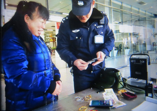 几分钟后,一名中年女士急匆匆地来到安检处置台认领包,一开口就是:“哎妈大兄弟,可吓死我了,这可是我给儿媳妇带的礼物,幸好没丢了啊!”浓浓的东北味儿让同是东北人的李万胜倍感亲切,清点了包内物品无一缺失后,失主李女士当场手写一封感谢信表示感激。
