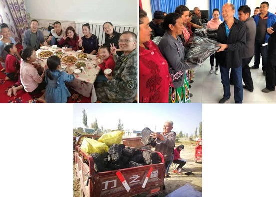 春耕时节,工作队员苗永强多次来到亲戚阿依古丽·艾力家,引导她充分利用房前屋后的空地种植蔬菜,发展庭院经济,并向她讲解简单的种植技术,收获季节到来时,阿依古丽大姐笑开了花,西红柿、辣子一盆盆往工作队送,通过阿依古丽大姐的率先尝试,村民们也争先在自家的空地种植蔬菜,改变了村民不爱种菜买菜吃的习惯。队员王丽了解到村民阿依先木及巴哈尔古丽的孩子均患有唇腭裂,家庭困难无钱医治的情况后,积极主动联系各个公益医疗机构,填写申请表格,做手术前的各项准备,免去了她们不懂汉语,不会写汉字,没出过远门的一切后顾之忧。免费做完手术后,阿依先木的女儿米克热依已经出落成了一个美丽爱笑的小姑娘了,孩子灿烂的笑容,让工作队也乐开了花。副队长塔西尼牙孜及队员买吾兰在严寒的冬季帮助缺乏劳动力家庭制作板床,队员阿比旦······