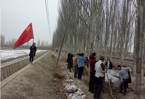 虽然是天气冷,阿克布隆村村委会副主任库尔班·亚生带领本村农牧民青年团员和返乡大学生一起在本村的胜利路、博斯坦路绿化带打扫卫生,帮助困难的、缺少劳动力的家庭解决困难诉求,以及宣传冬季疾病防治。
