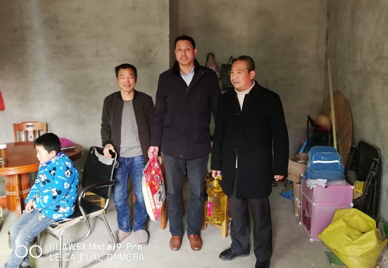 清风网讯(通讯员:童曙明)1月22日,湖北英山县城北个协党支部副书记、县政协委员、工商联常委王贤东将价值近3000元的食用油、大米、面条等物资送到英山县南河镇瓦寺前村15个贫困户家中,开展送温暖献爱心活动,让贫困户能够过好春节。图为王贤东(中)到贫困户家中送物资的情景。