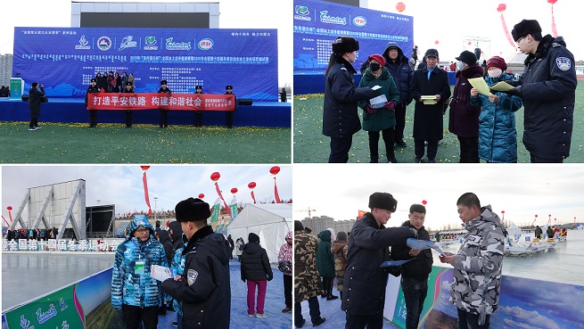 内蒙古锡林铁警深入全国第十四届冬季运动会冰上龙舟项目测试赛现场 开展爱路护路宣传