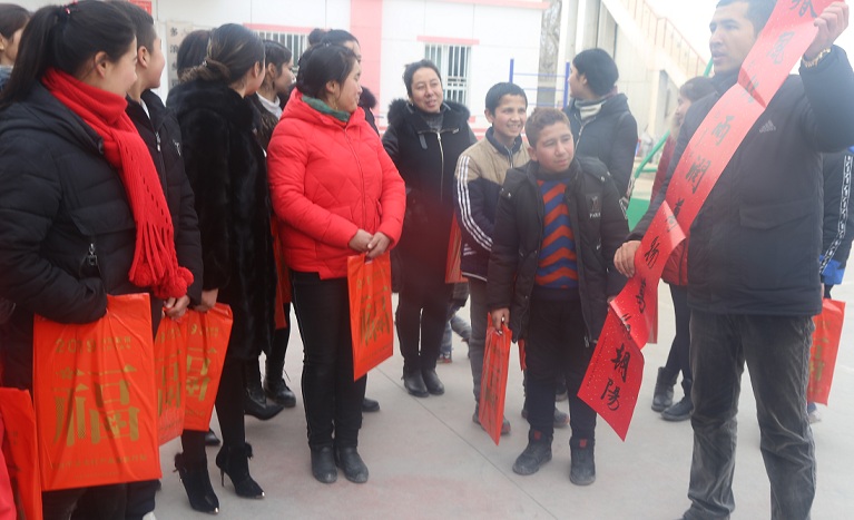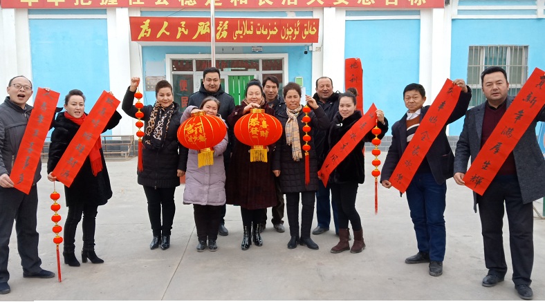 “吉祥春联门边挂,大红灯笼高空悬”。过年挂灯笼、贴春联是中国古老习俗,红色代表喜庆,圆形灯笼则寓意团圆美满,红灯笼象征着平安祥和,也寓意着红红火火的生活;春联象征着喜庆、吉祥和幸福,也寄托了人们对新春的美好祝愿。送春联活动中,协海尔买里斯村工作队队员居热艾提·麦麦提为大家讲解“贴春联、挂灯笼”的传统寓意,体现人民对美好生活的向往与追求,并现场指导和展示如何张贴春联。各村村党支部书记耐心为群众讲解如何将灯笼展开、挂在家里的什么位置最合适、春联如何贴、怎样区分上联和下联。活动过程中,工作队员热情地挂灯笼、送春联,并做好登记发放工作,现场每个人脸上都洋溢着幸福的笑容。