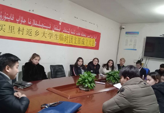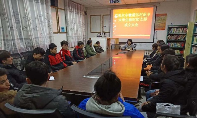 大会选举优秀返乡大学生担任“临时团支部”书记,由“访惠聚”工作队员兼任临时团支部第一书记与村团支部书记双重捆绑帮带。
