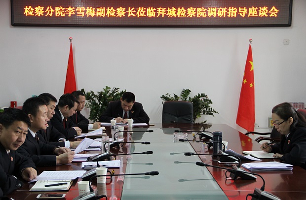 在与副科级以上干部座谈中,李雪梅副检察长详细了解班子队伍建设情况,围绕办案监督、案件管理、信息公开、案件评查、理论调研等工作进行现场指导,对拜城县院在以往工作中取得的成绩和亮点给予了高度肯定。