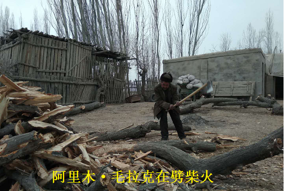 哈丽且木经常笑着对下沉干部说:“这些老人都很可怜,有些生活都不太能自理,他们也都是我公公婆婆的朋友,来家里吃饭也就是锅里多加一瓢水”,话虽这样说,家里吃饭的人多,消耗就大,一袋25公斤的面粉不到两个星期就吃完了。有位叫阿里木·毛拉克的智障老人就住在附近独自生活,几乎每天都要来吃饭,拉条子一顿能吃三盘子,可能是老人的意识里有种朴素的报答信念,每次吃完饭,不管家里是否需要,他都要去家中的后院劈柴火、锯木头,劝也劝不住,就由他去了,后院的木头都被他劈成柴火了,甚至有次把家里的羊圈的围栏都劈了柴火,一时成了村里的笑谈。