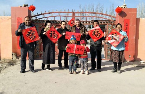 ----为祝贺春节,营造节日气氛,让群众感受传统佳节,拜城县农机局驻大宛其阿热恰特村工作队开展贴春联活动。