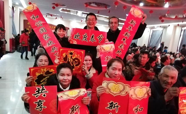 阿克布隆村在今天(周一)升国旗后向群众宣讲了“春节的由来和习俗”。“访惠聚”工作队和村干部一同向群众赠送了春联并向他们送上了新春的祝福,祝福他们新年快乐、万事如意、身体健康!祝福我们伟大的祖国繁荣昌盛、国富民强!