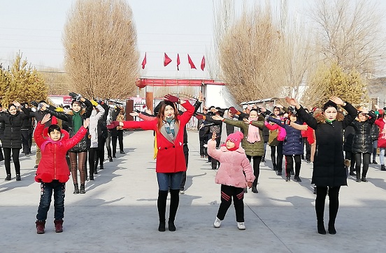 在村委会的大院里,阿克布隆村委会的春晚节目也在紧锣密鼓的排练着。参加节目排练的有返乡大学生的现代活力、有热情洋溢的、有青春萌动的少男少女,也有爱国情怀的大爷大妈,还有活泼可爱的“小不点”们。他们即将在春节期间上演一场史无前例的国语版的属于阿克布隆村的春节联欢晚会。