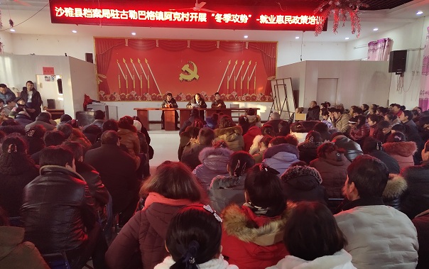 清风网讯(通讯员:沙雅县档案局 冯铃铃)为扎实贯彻落实习近平总书记精准扶贫、精准脱贫基本方略,沙雅县档案局驻古勒巴格镇阿克村发挥村级党组织职能,集中精神、集中力量开展脱贫攻坚冬季攻势。1月23日,开展冬季攻势-就业惠民政策培训,包括村干部、工作队、贫困户等共计520人参加此次培训。