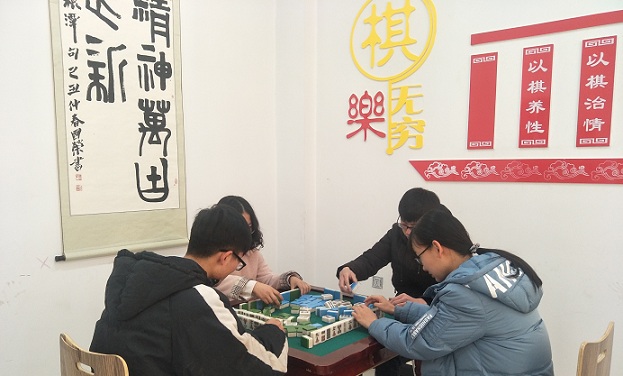 大学生在棋牌室里活动