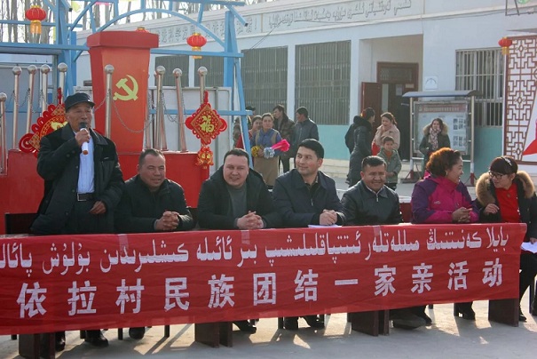 当天,地区民族进步先进个人、镇民族团结示范户王跃武为巴依拉村52户村民送去了面粉、棉衣、棉鞋等价值5000余元的慰问品。活动现场,在西北政法大学上学的该村村民努尔比亚·吐尔洪朗读了自己写的《一封感谢信——一名巴依拉村大学生的心声》,信中充满了对党的感恩、感激,她表示,要时刻牢记习近平总书记的谆谆教诲,永远跟党走,做一个对国家、对社会有用的人,并响亮地喊出“我们都是中华民族的一份子,无论身处哪里,都要相互团结,凝聚力量,共同维护国家的安定和谐”。