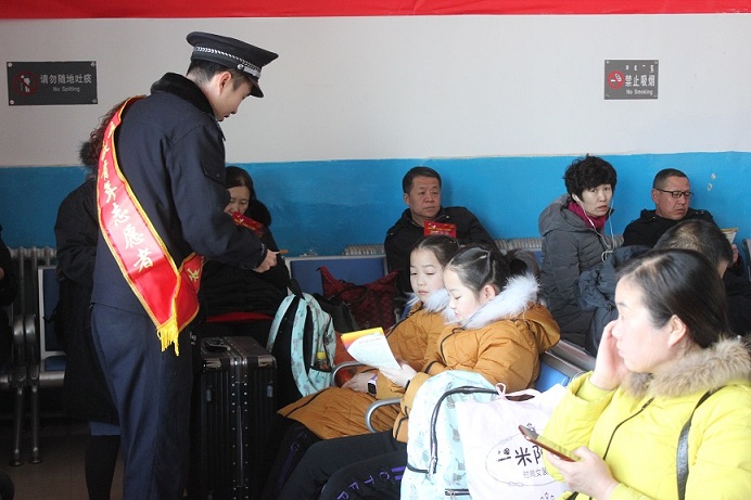 清风网讯(通讯员:呼和浩特铁路公安处 丁杰)为加强春运期间沿线农牧民和候车室旅客对铁路法律法规和铁路安全常识的了解,预防铁路交通事故和危及行车安全情况发生,1月30日上午,呼和浩特铁路公安处白音察干车站派出所结合辖区和线路治安实际,所领导带领民警深入管内重点区段和候车室开展爱路护路宣传工作,并对沿线牧民进行签约回访。