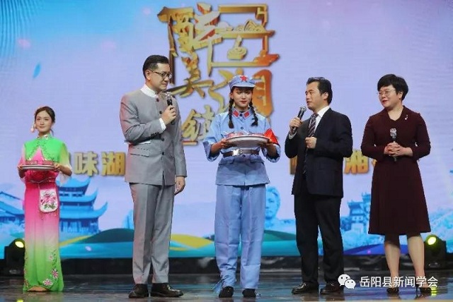 决赛舞台上,岳阳县人民政府副县长彭碧芳代表筻口出战,从抗战文化、人文文化、孝友文化、花鼓戏文化、农业生产等方面,向全国人民隆介绍了岳阳县筻口镇的美食、美品、美景。彭县长的解说时而铿锵有力,时而温婉柔情,带领观众们领略了曾经的铁血抗战历史和如今的幸福时光。解说完后,彭县长和筻口镇党委书记梁亿仲更是为现场评委和观众带来一场美食盛宴,柔软的绿豆粉皮和飘香的岳阳烤乳鸽一下子抓住了所有人的心,馋的在场所有人口水直流,大众评审纷纷将橄榄枝伸向筻口镇。