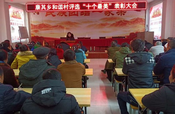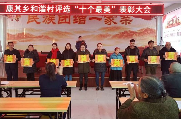 为了树立典型,激励更多家庭及其成员以先进为榜样,继续弘扬传统美德和社会正能量,形成崇尚文明健康科学时尚新生活的良好氛围,于1月29日,拜城县妇联、团委驻康其乡和谐村“访惠聚”工作队精神策划,在村民服务活动中心召开评选“十个最美”表彰大会,活动中表彰10名“美党员”、“最美团员”、“最美母亲”、“最美婆婆”、“最美媳妇”、“最美学生”、“最美丈夫”、“最美古丽”、“最美巴郎”、“最美老年人”等十个最美代表,并颁发了荣誉证书,活动得到了全村各族村民的广泛好评。
